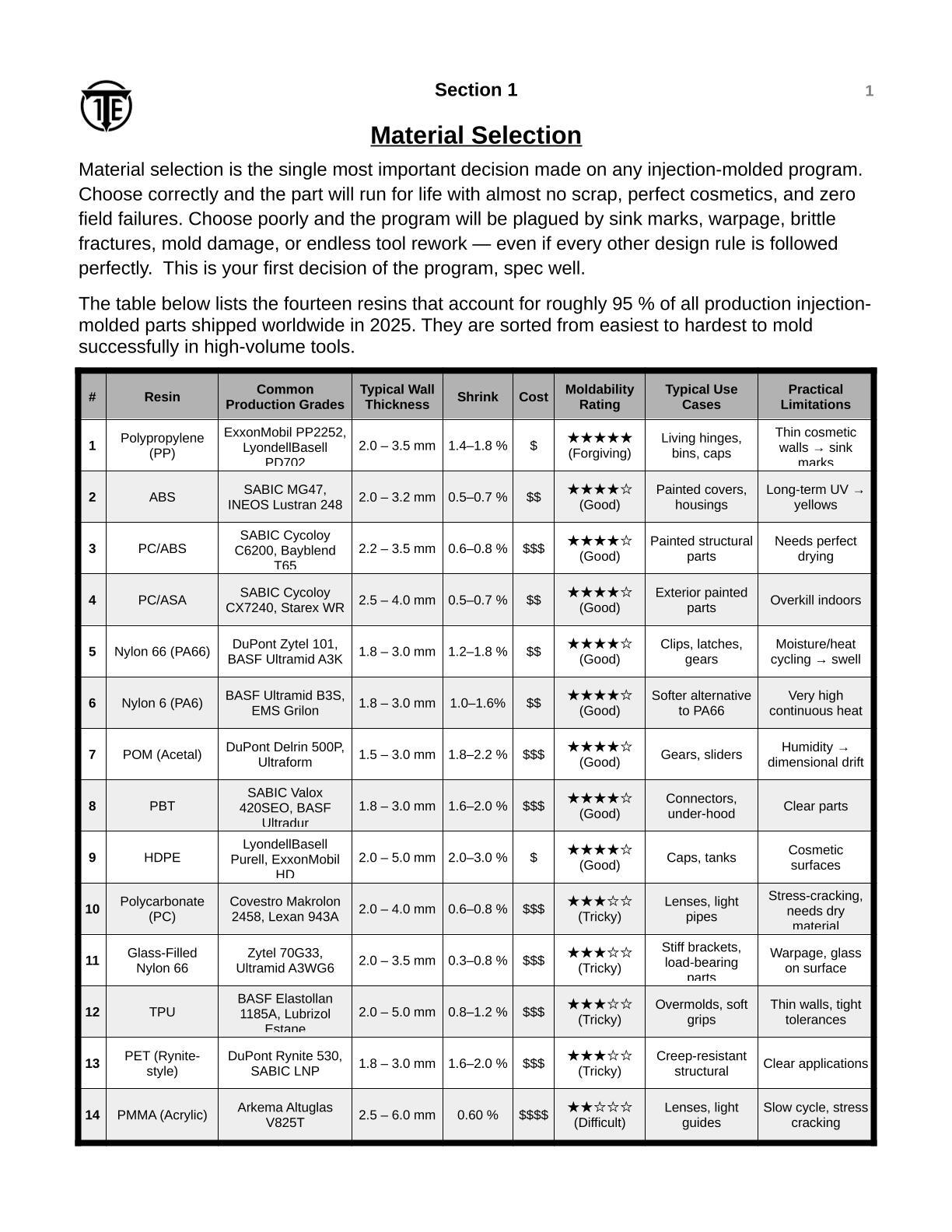 Experienced engineers: Use the printable reference tables for quick checks on walls, ribs, draft, tolerances, and features during design reviews.